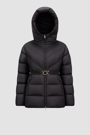 Doudoune courte Brosse à capuche et matelassage diagonal Moncler Noir